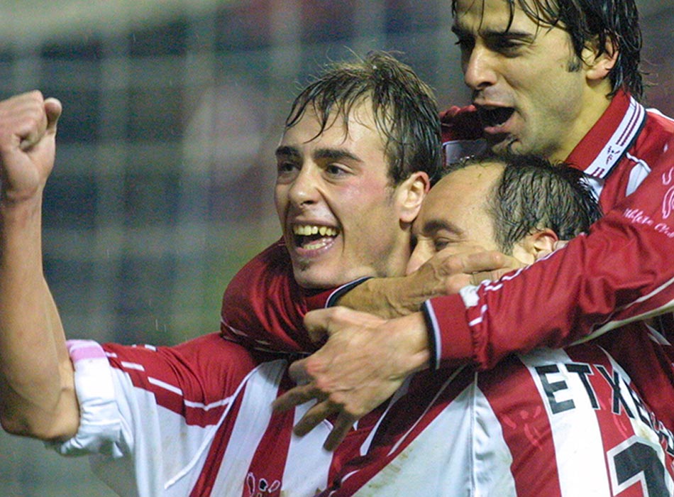 Goleada a la Real de Champions. Los donostiarras se presentaron en La Catedral con un equipo en el que estaban Xabi Alonso, Kovacevic, Nihat o Karpin y que acabaría segundo en Liga. 19 partidos llevaban sin perder. El resultado, una contundente goleada con doblete de Joseba Etxeberria y tanto final de Ezquerro en el minuto 90. Aquel partido también se recuerda por el ferreo marcaje que Luis Prieto y Aitor Ocio hicieron a los delanteros txuriurdines.