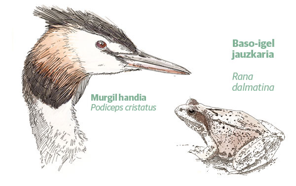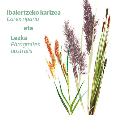 Ibai-ertzeko karizeen, ezpata-belarren eta lirioen artean.