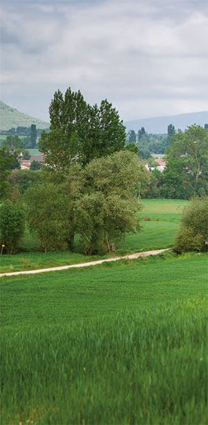 Unos metros más adelante, tomamos una pista agrícola a la derecha que, entre campos de cultivo, se dirige hacia el Sur, hacia Montes de Vitoria.