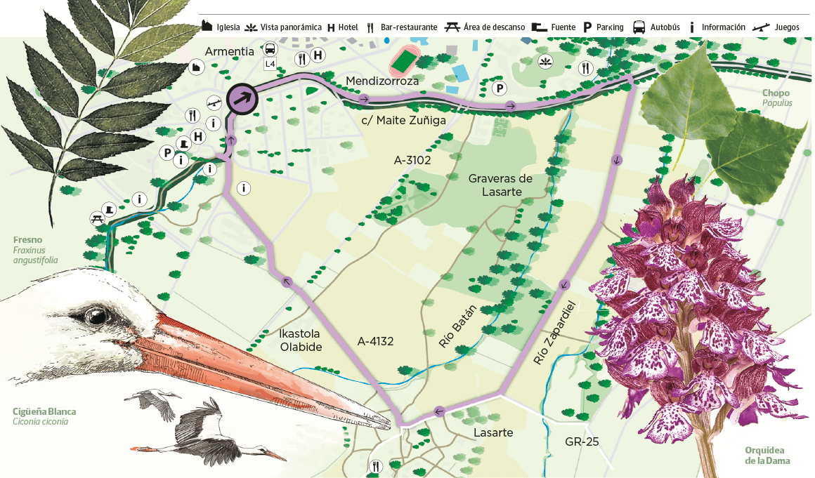 Dejamos a nuestra derecha las graveras de Lasarte y llegamos al pueblo, tramo que coincide con el GR 25 (Vuelta a la Llanada Alavesa a pie de monte) (4).