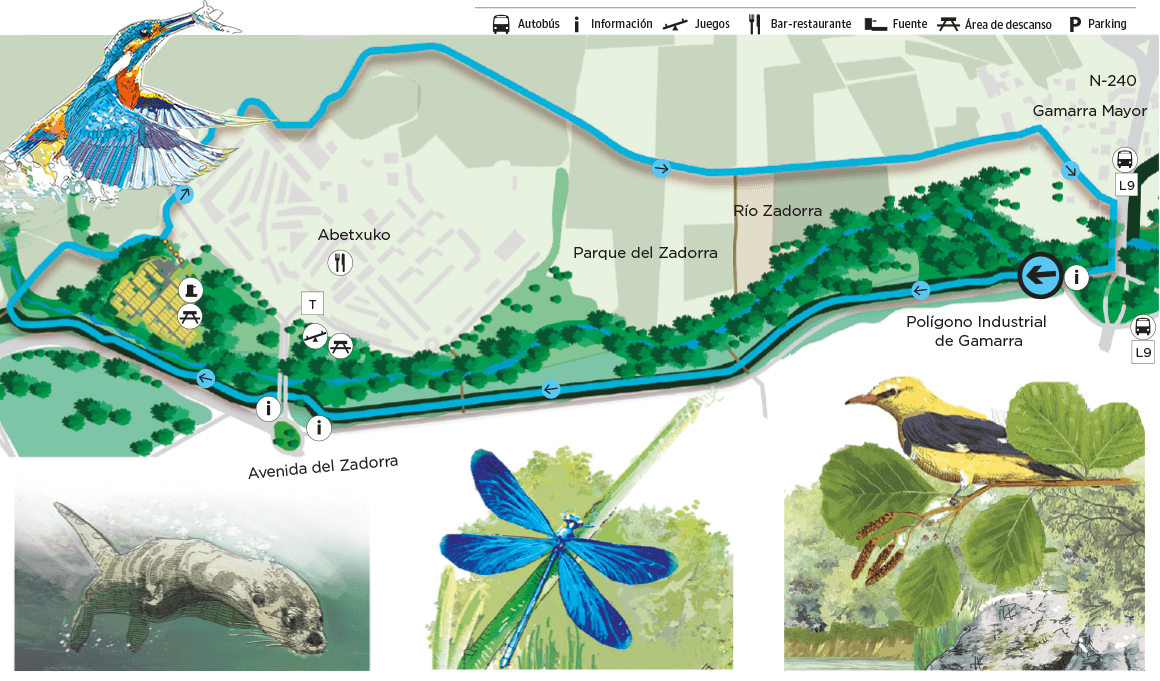 El Zadorra en este tramo gana profundidad. Desde hace unos años se dejan ver numerosos lucios, una especie invasora que deja poco espacio a las loinas. La buena noticia es que también hay ejemplares de martín pescador o de nutrias que se adentran en esa zona del río.