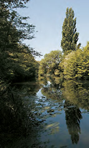 El río Zadorra y el cauce de avenidas han creado una isla fluvial con bosquetes de tilos, álamos, sauces y otras frondosas. En la margen derecha los campos de cultivo llegan hasta el cauce. -