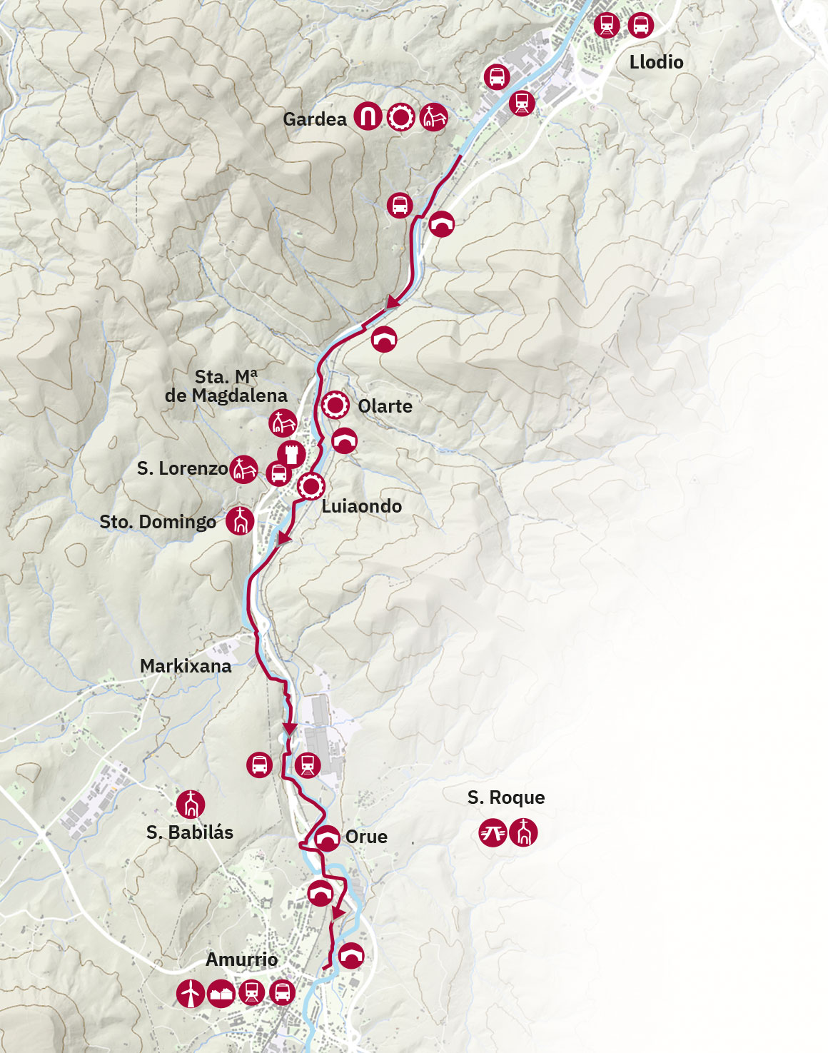Da igual por donde empiece el andarín o el ciclista esta ruta de 10 kilómetros. En cuestión de metros ya se habrá topado con algún puente medieval o alguna pasarela más moderna –Olako, Zabalibar, Zamora, Markijana, Zubibarrio, Olarte, Otazu o Gardea–, con los restos de molinos o con alguna de esas torres ayalesas declaradas conjunto monumental y que hacen viajar al siglo XVI, a esas guerras de linajes y bandos entre los señores del Valle.